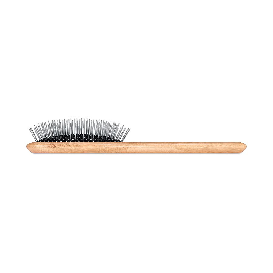 Zaobljene iglice s posebnim drsnim premazom ščitijo dlako pred lomljenjem in poškodbami ter pomagajo ohranjati njen naraven sijaj in mehkobo. Ergonomski ročaj z gumiranim zaključkom zagotavlja odličen oprijem tudi v vlažnih pogojih ali pri uporabi kozmetike.