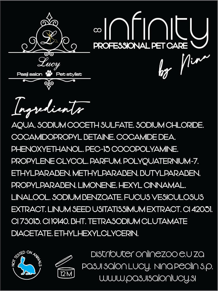 Izdelki INFINITY professional pet care by Nina so posebej oblikovani in pripravljeni za domačo kot tudi profesionalno kvalitetno nego psov in mačk.