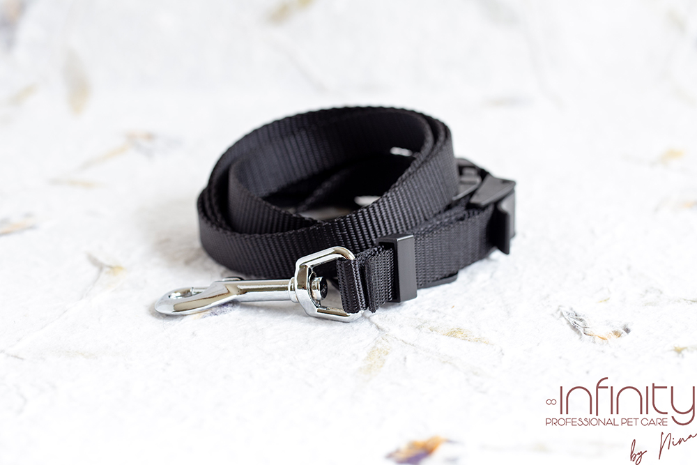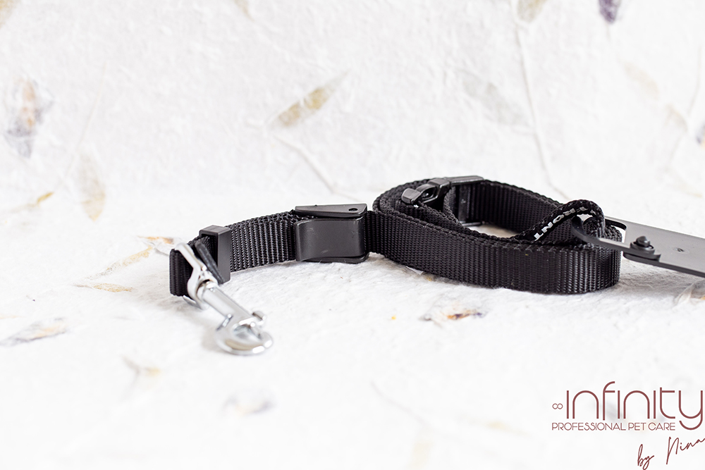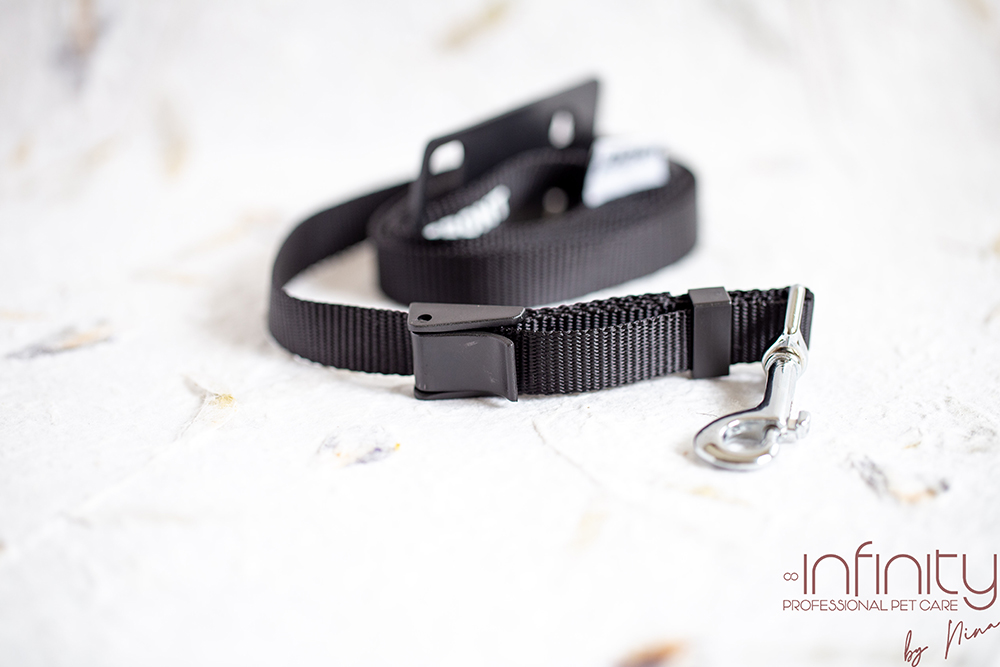 Sprednji trak za privez psa prepreči, da bi pes nepričakovano skočil z negovalne mize in deluje podobno kot povodec na sprehodu.