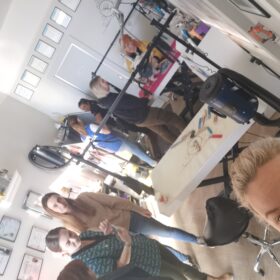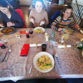 Izmenjavo znanj smo začele ob 09:00 v pasjem salonu Lucy, naše druženje pa je trajalo skoraj do 16:00. Vmes smo si privoščile tudi kosilo v bližnji restavraciji.